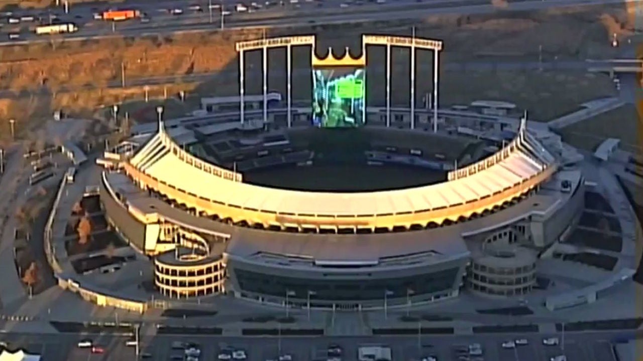 Un helicóptero de una cadena de noticias graba a un grupo de personas utilizando la pantalla gigante del estadio Kauffman, hogar del equipo de béisbol Kansas City Royals, para jugar al 'Mario Kart'. El equipo tuvo que dar explicaciones después de que se hiciera viral el vídeo.