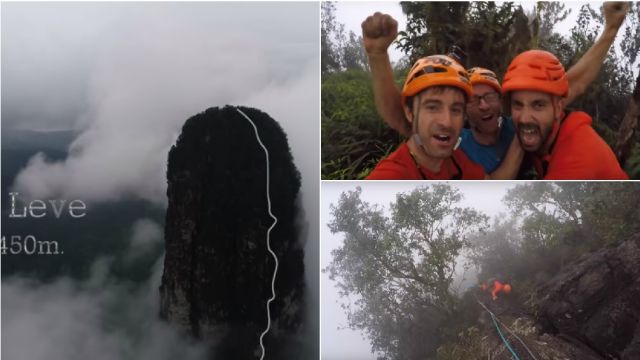 La primera ocasión fue para abrir un ruta nueva en escalada libre con dificultades muy altas de hasta 8b+, que pasa a ser la vía más difícil del Cao Grande con una longitud de 450 metros y a la que bautizaron como "Leve, Leve", que en el idioma local significa "despacio, despacio".