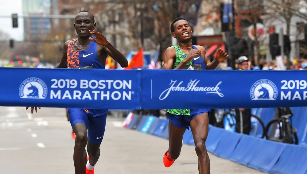 Lawrence Cherono y Lelisa Desisa llegaron a la par a la meta del maratón de Boston. Su sprint quedará para la historia de la mítica prueba, que se decidió por décimas de segundo.