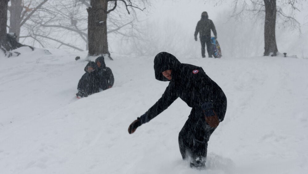 Central Park, icónico parque en el centro de la ciudad, se ha teñido de blanco y Shaun White, leyenda del snowboard y tres veces campeón olímpico en la modalidad de halfpipe (Turín 2006, Vancouver 2010 y Pyeonchang 2018), sorprendió a los neoyorkinos realizando trucos y piruetas con su tabla de snowboard.