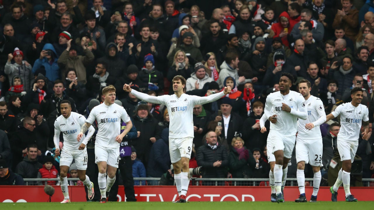 El Liverpool abrió la 22ª jornada de la Premier con una derrota en casa contra el Swansea (2-3), liderado por dos goles de Fernando Llorente y uno, el definitivo, del islandés Gylfi Sigurdsson, que dejó en nada la reacción local con dos dianas del brasileño Roberto Firmino.