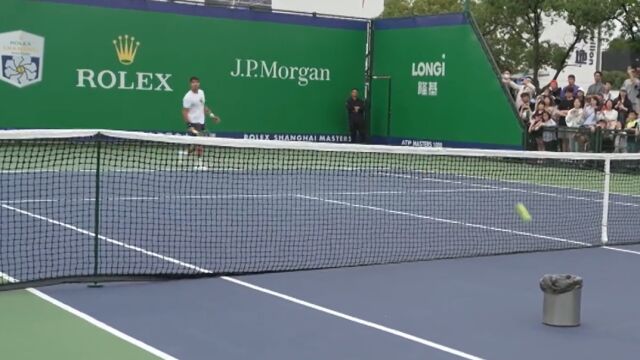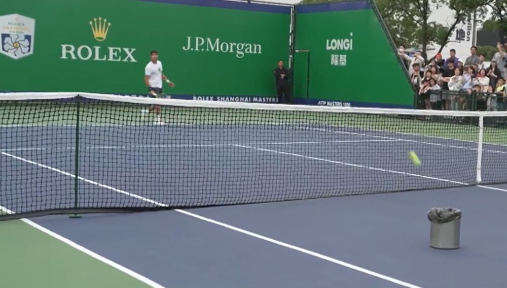 El dos veces ganador de Grand Slam y primer cabeza de serie en el Masters 1.000 de Shanghái, torneo en el que debutará mañana por primera vez en su carrera, se inventó un curioso, divertido y complicado ejercicio en su entrenamiento previo al primer partido en China ante Gregoire Barrere.