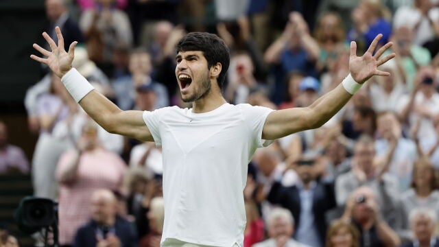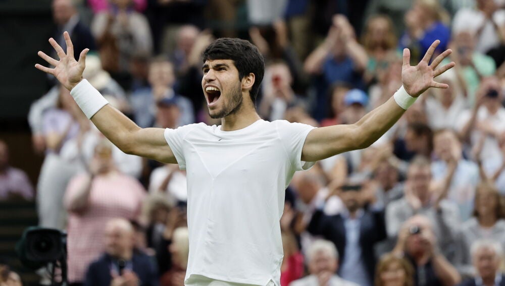 Como si de un auténtico robot se tratase. Carlos Alcaraz ganó a Daniil Medvedev en la segunda semifinal de Wimbledon y jugará la final ante Novak Djokovic el próximo domingo. El tenista murciano se ha impuesto en tres sets (6-3, 6-3 y 6-3) sin apenas oposición, con un Medvedev errático y en algunos tramos del partido muy inferior al número uno del mundo.