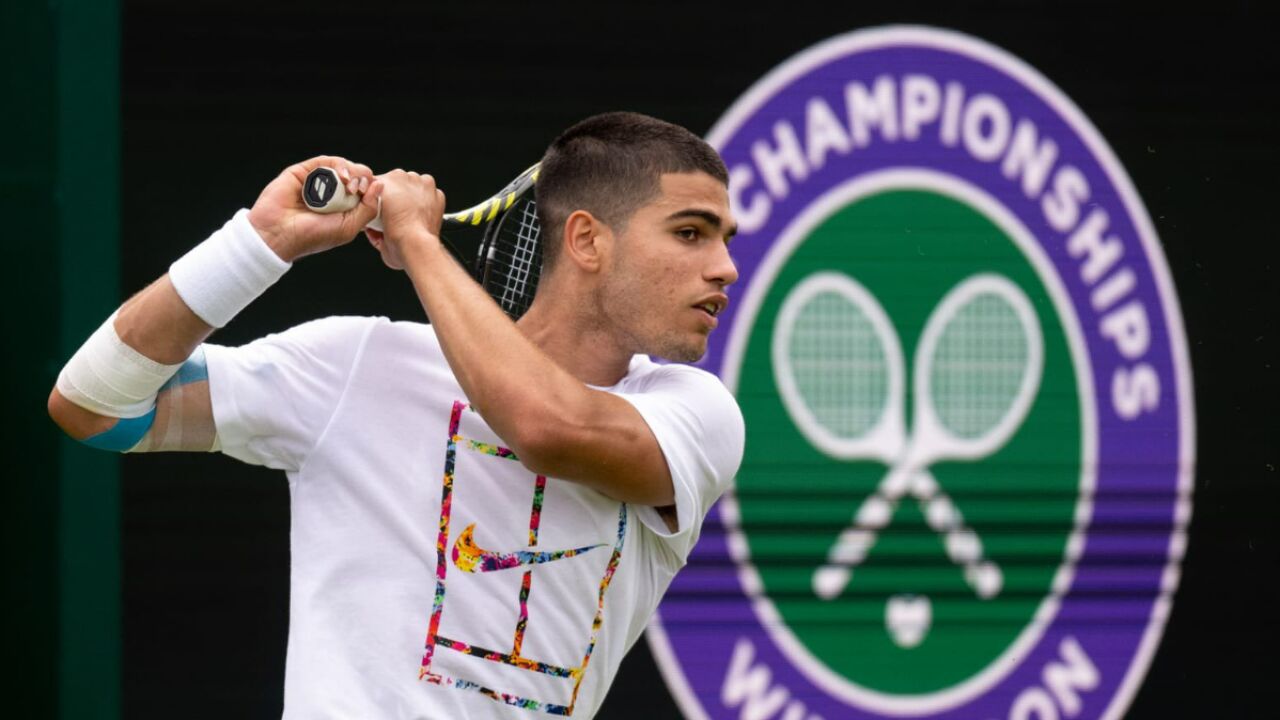 A tan solo un día para que arranque Wimbledon y a dos para su debut, Carlos Alcaraz sigue sin encontrar su juego en la hierba londinense. El murciano ha llegado al tercer Grand Slam del año con un aparatoso vendaje en el codo y no ha cogido buenas sensaciones en sus partidos de exhibición (derrota ante Tiafoe y Ruud).