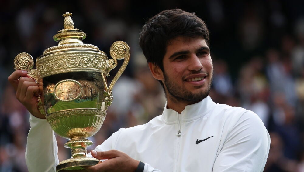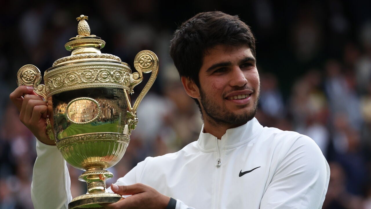 Pero amigos, anda que le tembló la muñeca al murciano en todo un quinto set de la final de Wimbledon ante Novak Djokovic. Rompió en el tercer juego y encarriló el partido por el título mientras el 'dos' del mundo estrellaba la raqueta contra la red. Desquiciado y sin armas todo un 7 veces campeón. Alcaraz confirmó el 3-1 con temple y serenidad pero quedaba lo más delicado, mantener tu servicio ante un contrariado Nole que volvió a tener sus más y sus menos con los espectadores. Lo hizo Carlos, y cómo lo hizo, ni una sola opción le dio al mejor restador del mundo, que estrelló la última derecha del torneo en la red y con una cara de asombro se fue a saludar al nuevo rey de Wimbledon. Ahora sí, arranca la 'Era Alcaraz'. Abran paso.