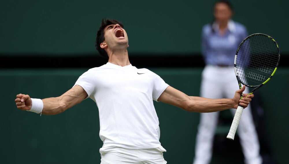 Carlos Alcaraz luchará en dos días por igualar los dos títulos de Rafa Nadal en Wimbledon. Y sí, con apenas 21 añitos. Así certificó el pase a su cuarta final de Grand Slam. Djokovic o Musetti serán su rival.