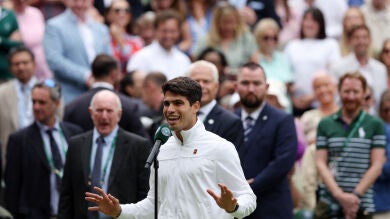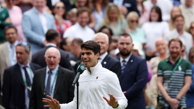 "El domingo será un buen día para las españoles... Ya sabéis, con la final de la Eurocopa", apuntó Alcaraz ante el público de la central del All England Lawn Tennis and Croquet Club. Como era de esperar, esas palabras generaron algo de malestar e incluso pitos por parte del público británico, una situación algo incómoda que el murciano supo solucionar con bastante diplomacia.