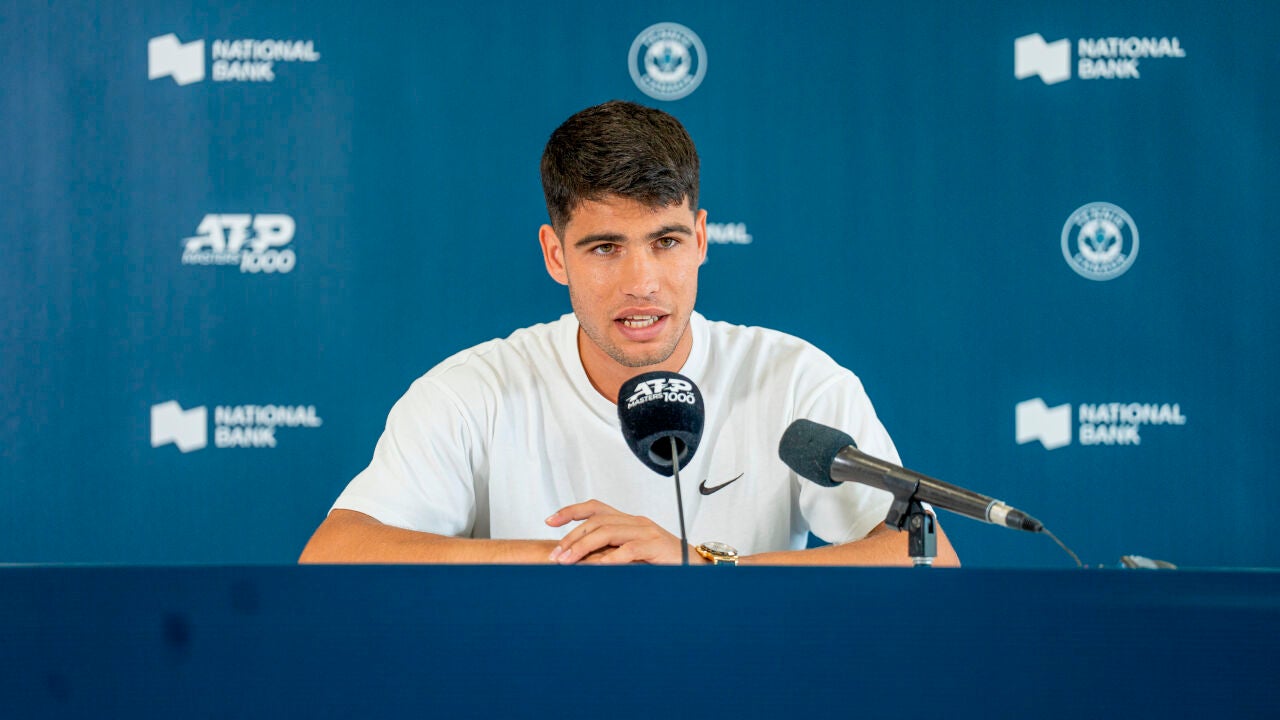 Si algo le caracteriza a Carlos Alcaraz es su espontaneidad. Además de su pasión por el Real Madrid. Y es que el tenista murciano desea, como muchos madridistas, ver al jugador francés vestido de blanco. Ante la pregunta de Nelson Pérez, de Hispanic Sports Media, y en la rueda de prensa con motivo del Masters 1.000 de Toronto, el número 1 del mundo lo dejó bien claro: "Todo madridista quiere ver a Mbappé en el Madrid".