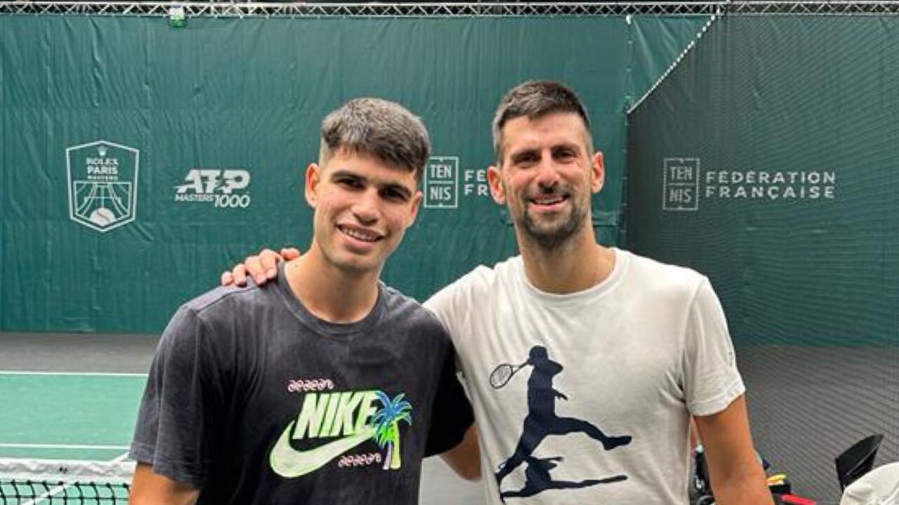 Los dos primeros del ranking comparten cancha e intercambian golpes en la previa del Másters 1.000 de París-Bercy. Dkojovic y Alcaraz lucharán por un nuevo título y por terminar el año con el nº 1.