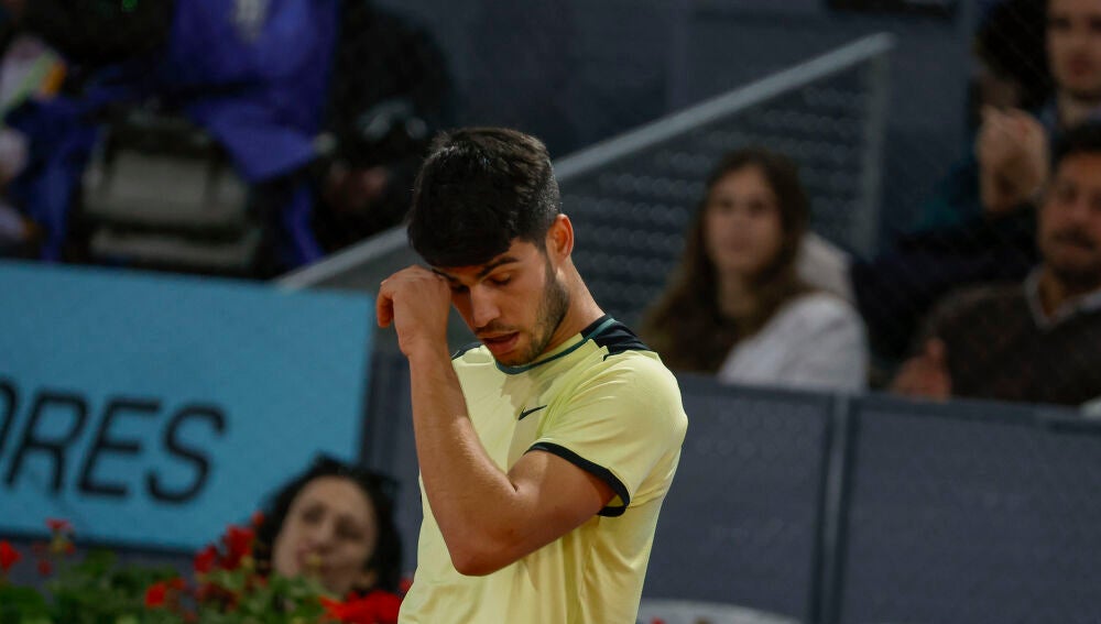 Carlos Alcaraz no jugará el Masters de Roma (6 al 19 de mayo) tras anunciar que ha recaído de su lesión en el antebrazo dos días después de perder en cuartos de final del Mutua Madrid Open 2024 ante el ruso Andrey Rublev por 6-4, 3-6 y 2-6.
