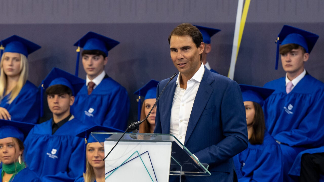 Rafa Nadal estuvo presente este miércoles en la graduación de 50 de los alumnos de su academia de Manacor y ofreció un discurso ante esos jóvenes que ha sido muy compartido en redes sociales. El ganador de 22 grand slam y que este año no ha podido estar en Roland Garros por su lesión en el psoas ilíaco recomendó a los recién graduados no dejar de darse oportunidades para lograr sus objetivos.