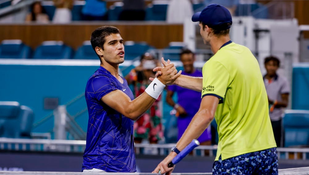 A pesar de que Hurckaz devolvió la bola, ahí estuvo Alcaraz para ponerla fuera del alcance del polaco pero el punto ya se le había dado al murciano, su rival se quejó y segundos después Carlos le pidió al juez de silla que repitiera el punto ante los aplausos de la grada y de su rival, que le agradeció el deportivo gesto en repetidas ocasiones.