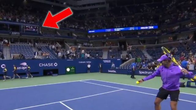 Pues bien, Rafa Nadal, tras ganar su partido ante Diego Schwartzman intentó lo mismo y lo consiguió, eso sí, algo más cerca que Federer. En la cabina de ESPN, se encontraba el mítico John McEnroe que se quedó totalmente asombrado de la puntería de Nadal e hizo un signo de aprobación entre risas.