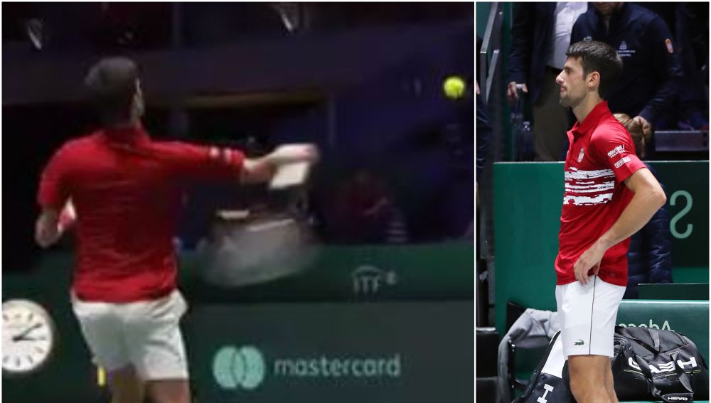 El tenista serbio lanzó una pelota contra el público de la Caja Mágica como respuesta a la frustración que arrastró durante todo el partido y que acabó con 'Nole' eliminado de la Copa Davis.