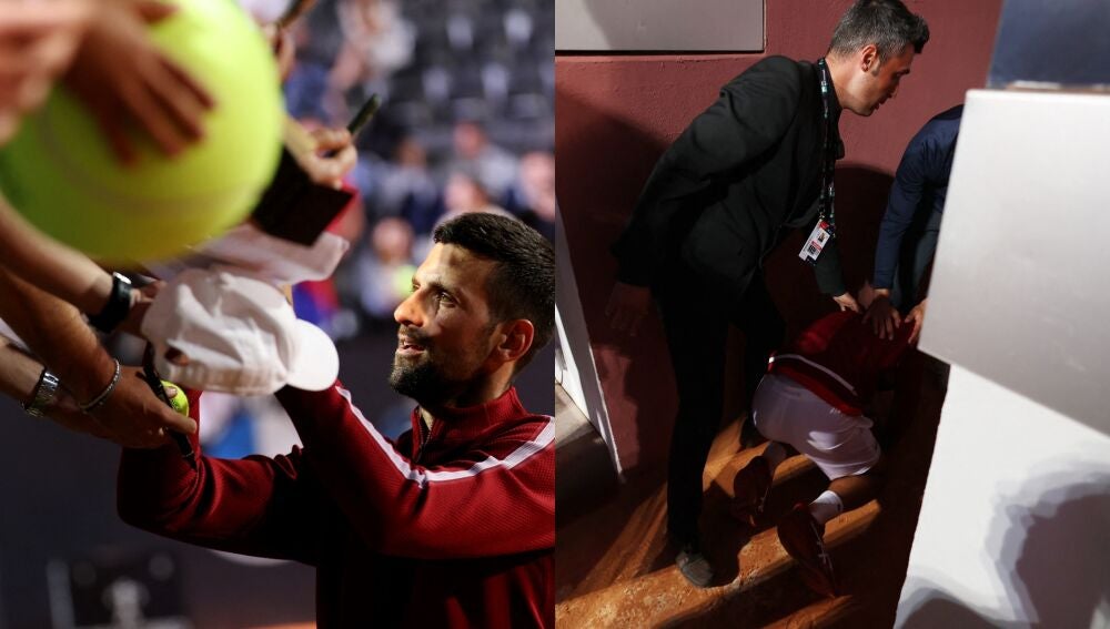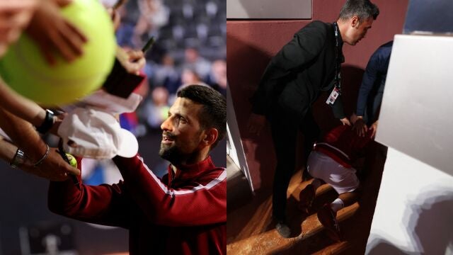 Novak Djokovic fue noticia por partida doble en su estreno en el Masters de Roma, un torneo que ha ganado en seis ocasiones (2008, 2011, 2014, 2015, 2020, 2022), muy a su pesar y de forma completamente involuntaria. Y es que el serbio, tras superar al francés Corentin Moutet en dos sets (6-3 y 6-1) recibió un botellazo fortuito en la cabeza cuando estaba firmando autógrafos a los fans a la salida de la pista central del Foro Itálico.