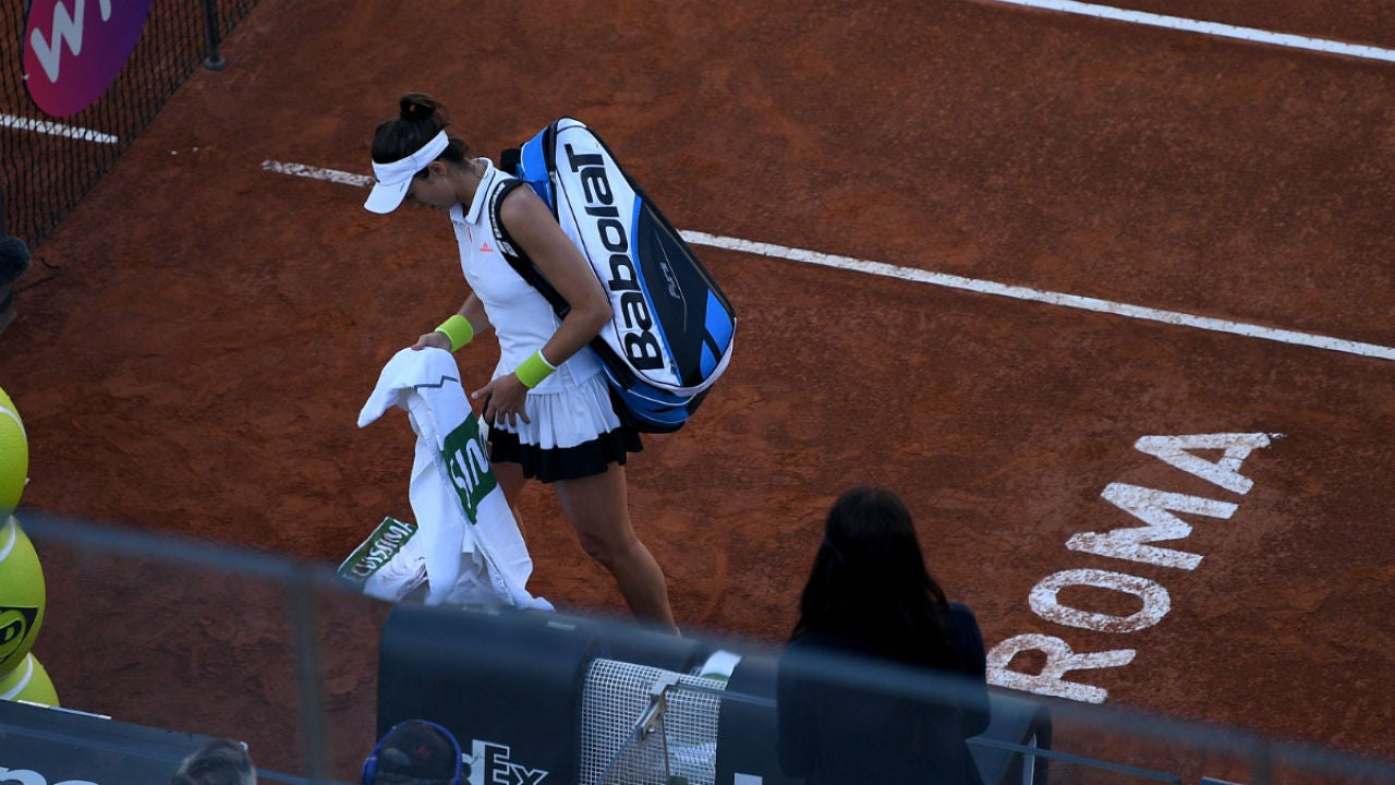 La española Garbiñe Muguruza se retiró de la semifinal del torneo de Roma a causa de una lesión, lo que supuso el pase a la final de su rival, la ucraniana Elina Svitolina, que se verá las caras con la rumana Simona Halep.