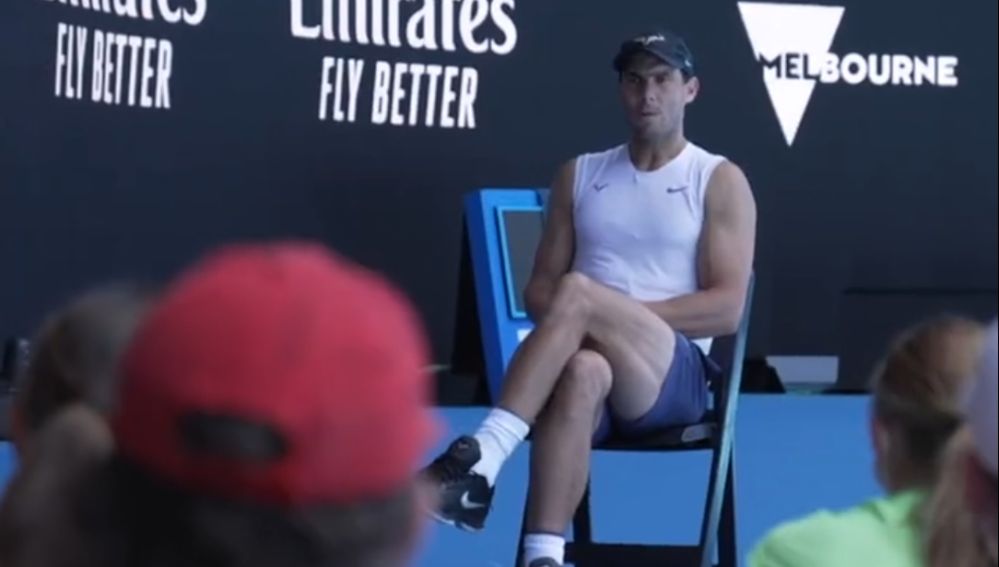 Sin embargo, de un modo paralelo, como en otro mundo, Rafa Nadal aprovecha todo el ruido para aconsejar a un grupo de niños en una de las pistas del Open de Australia. El balear se sentó frente a decenas de niños y les dio un par de consejos que nunca olvidarán y que seguro que les servirán para el futuro.
