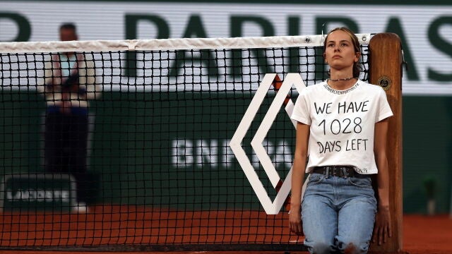 Ayer, en la semifinal de Roland Garros, el hecho terminó quedando en anécdota pero el peligro es real, afortunadamente las intenciones de la joven eran pacíficas y solamente quiso protestar pero el hecho de que llegara a atarse al cuello con un hilo de metal no transmite mucha seguridad, al fin de al cabo, los jugadores estaban a unos pocos metros y podía haber terminado en tragedia.