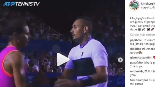 Nick Kyrgios ha publicado en su cuenta de Instagram un polémico mensaje sobre Nadal en el que incluye un emoticono de una jeringuilla. Tras el partido hubo cruce de declaraciones entre ambos tenistas.