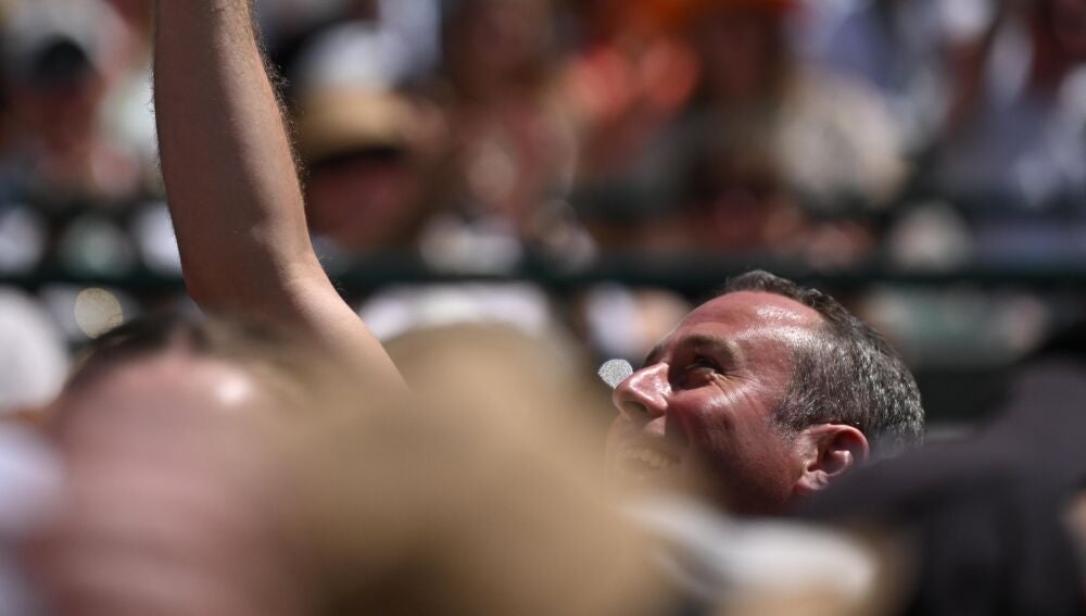 El partido de octavos de Wimbledon entre Daniil Medvedev y Jiri Lehecka nos dejó uno de los momentos más cómicos de lo que llevamos de torneo. Y es que tras un saque del ruso, Lehecka restó y mandó la bola al cielo de la Pista 1, con la buena (o por el contrario mala suerte) de acabar en el vaso de uno de los aficionados que se encontraba viendo el encuentro. Las risas de los allí presentes se sucedieron, mientras el afortunado levantaba el vaso como si de un trofeo se tratase.