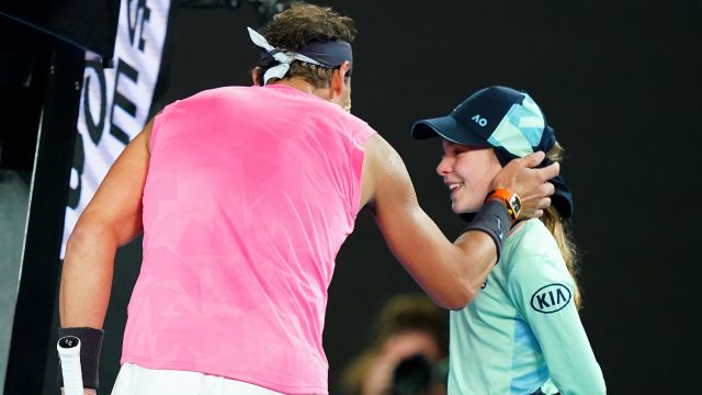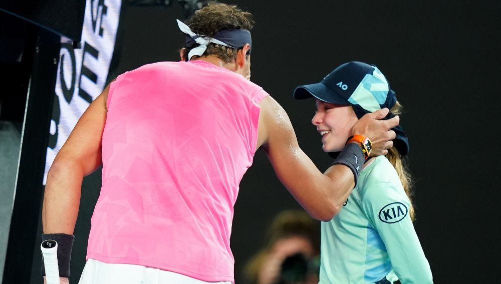 Rafa Nadal dio un pelotazo sin querer a una joven recogepelotas en su partido del Open de Australia y enseguida se preocupó por ella.