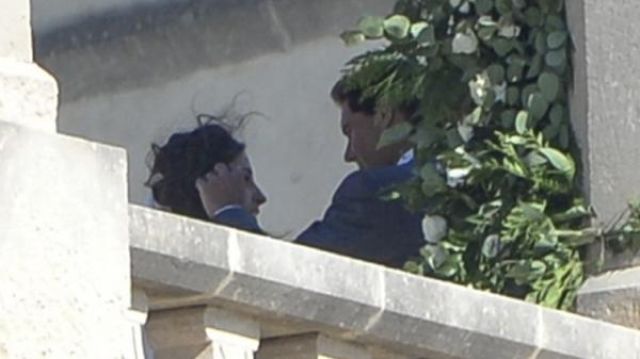 La instantánea fue tomada de lejos. En ella se ve como a los novios intentando escabullirse de posibles paparazzis. Se intentan tapar con unas plantas que había en el balcón de la finca, evitando así ser vistos.