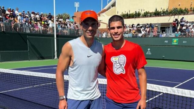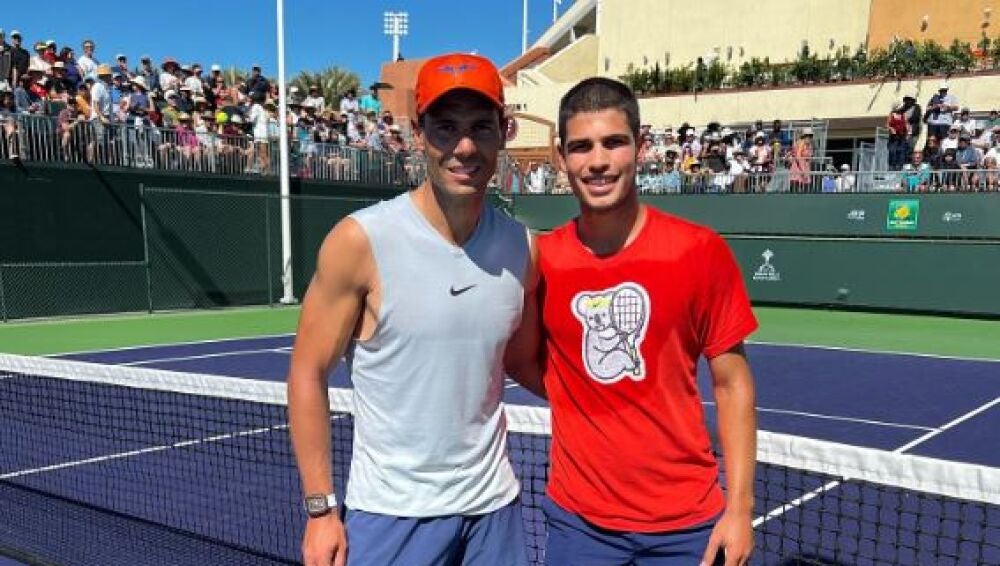 Rafa Nadal y Carlos Alcaraz, los dos mejores tenistas españoles del momento, han protagonizado uno de los entrenamientos más atractivos en Indian Wells, el Masters 1000 conocido popularmente como el 'quinto Grand Slam' que arranca este viernes en categoría masculina.