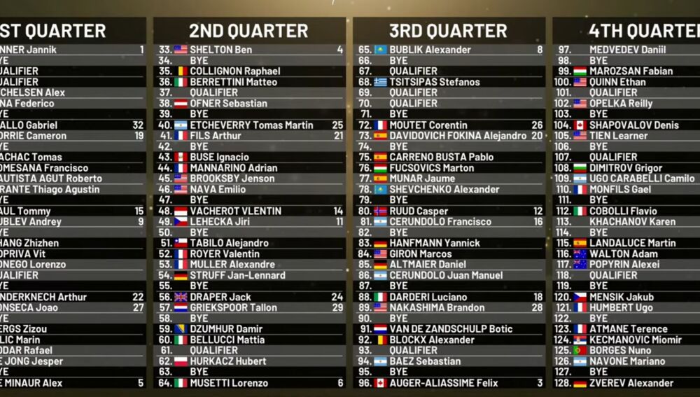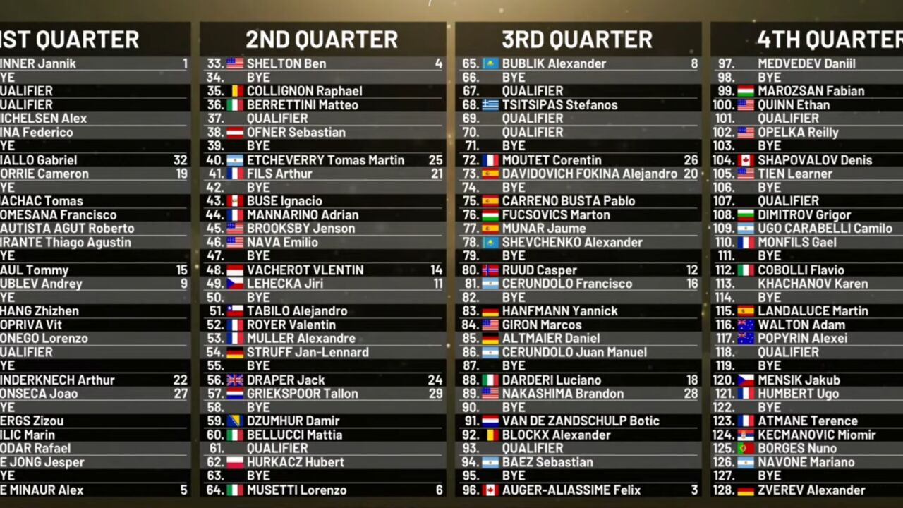 Basándonos en el ranking, la proyección de los cuartos de final del Mutua Madrid Open sería: Sinner vs De Miñaur, Shelton vs Musetti, Bublik vs Felix Auger-Aliassime y Medvedev vs Zverev.
