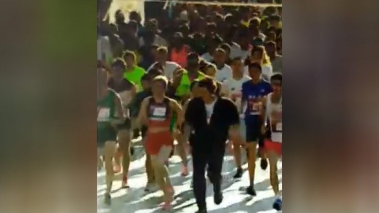 Pocas veces se ha visto algo similar en una carrera. Un hombre empujó de forma brutal a la atleta Oliveru Jevtić en la salida de una carrera de diez kilóemtros en Sofía. Jevtić poco pudo hacer y acabó por los suelos y con un hematoma en la cabeza.