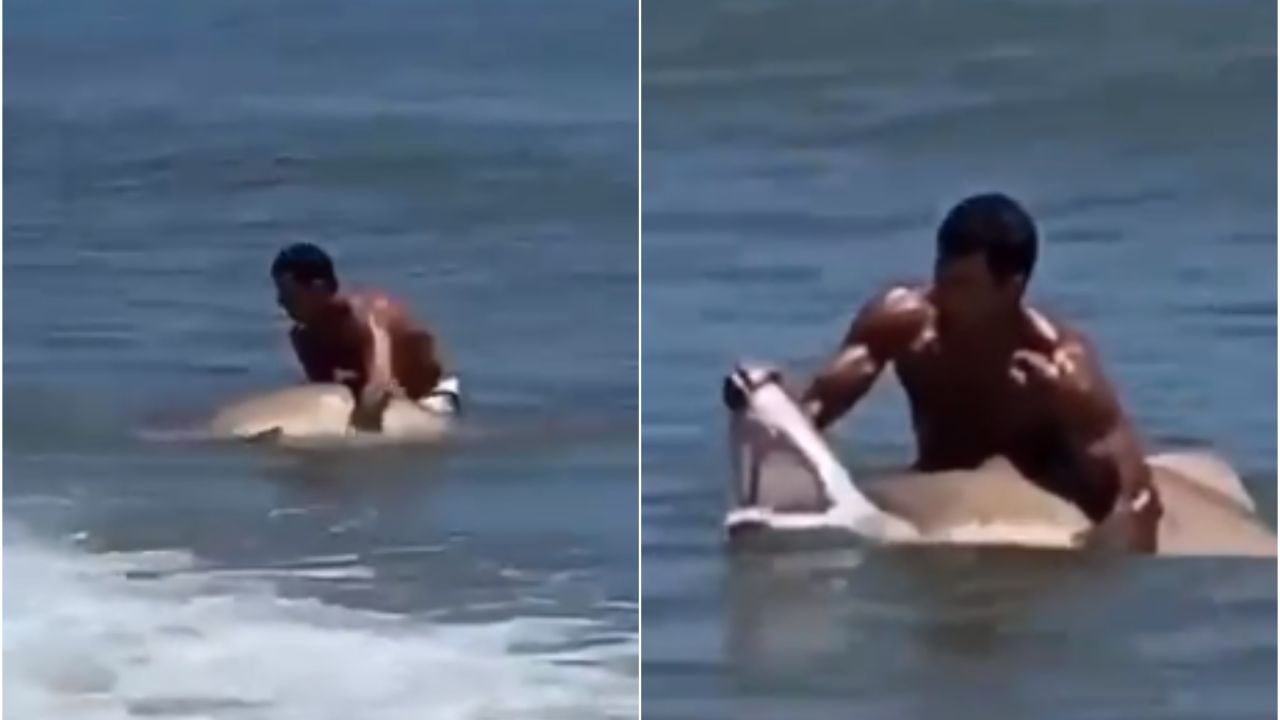 El hombre consigue inmovilizar al tiburón con sus propias manos en una playa de Delaware, Estados Unidos. El vídeo recorre las redes sociales a gran velocidad.