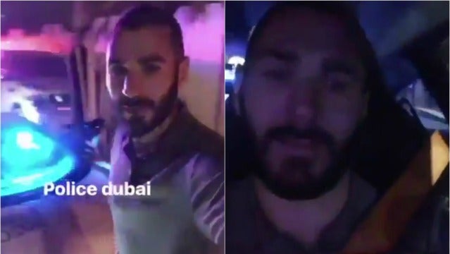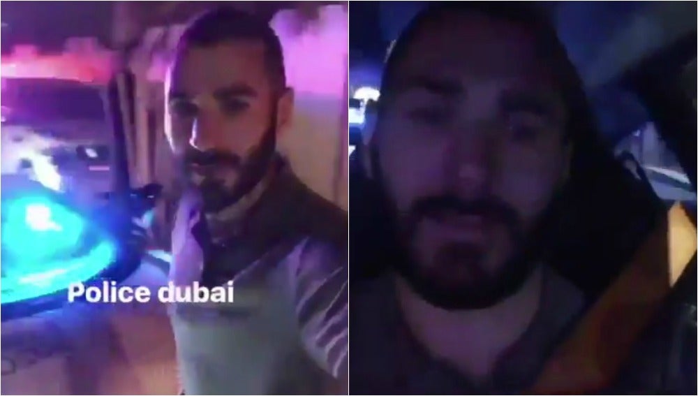 Karim Benzema compartió un vídeo en redes sociales en el que se le puede ver en Dubai dentro de un coche de policía. El delantero del Real Madrid quiso probar uno de los McLaren que usan los agentes policiales y estos le invitaron a subirse.