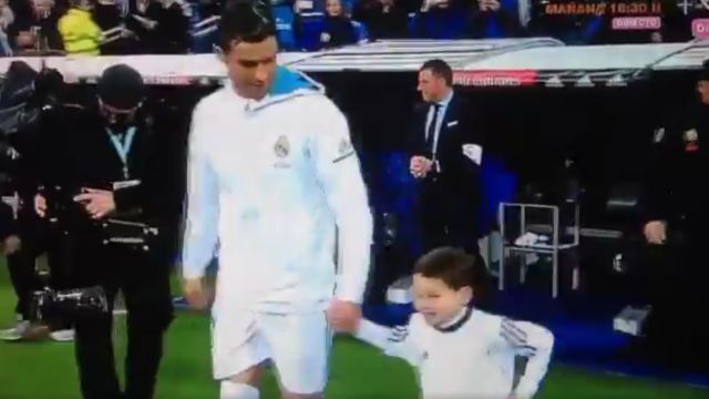 Al pisar el césped, Cristiano le enseñó al pequeño su habitual salto y el niño no dudó en imitarle, ante la risa de Cristiano y varios jugadores blancos. El vídeo se volvió viral a las pocas horas y su madre publicó un mensaje en Twitter: "Orgullosa de ser la madre de la criatura, ¡Hala Madrid!".