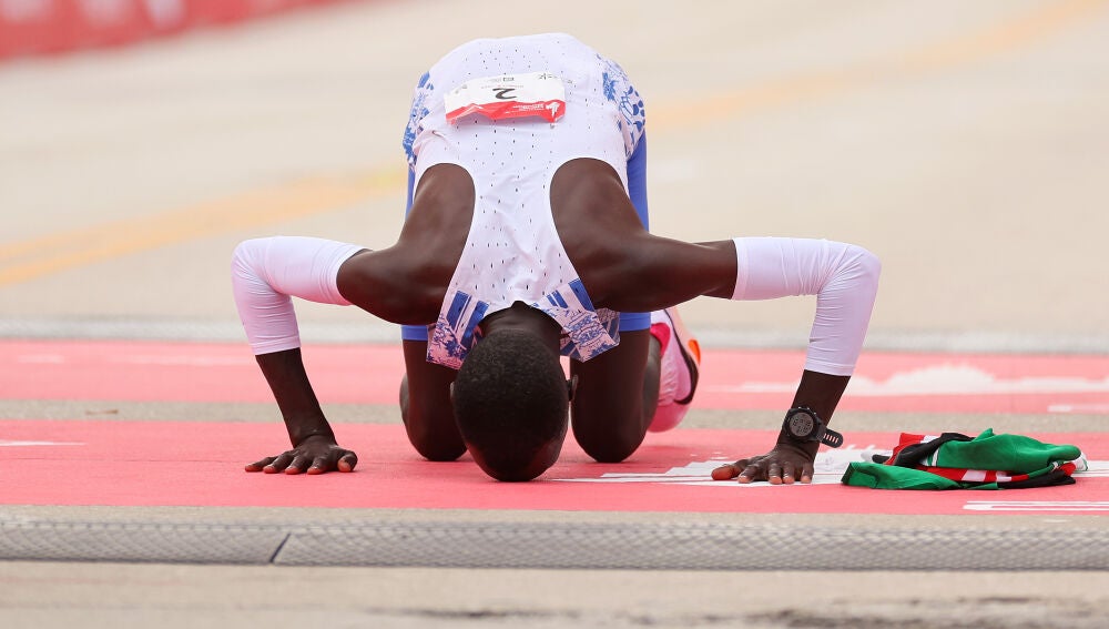 Kelvin Kiptum protagonizó en Chicago una jornada para la historia: culminó el maratón en 2:00.35, bajando en 34 segundos el anterior récord mundial de su compatriota, el también keniano Eliud Kipchoge. Lo ha hecho en su tercer intento y con apenas 23 años: 2:01.53 el pasado diciembre en Valencia; 2:01.25 en abril en Londres; 2:00.35 en Chicago. Tres maratones, tres victorias y el récord mundial.