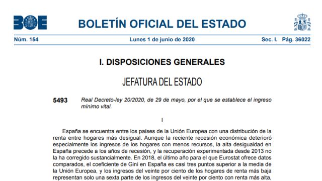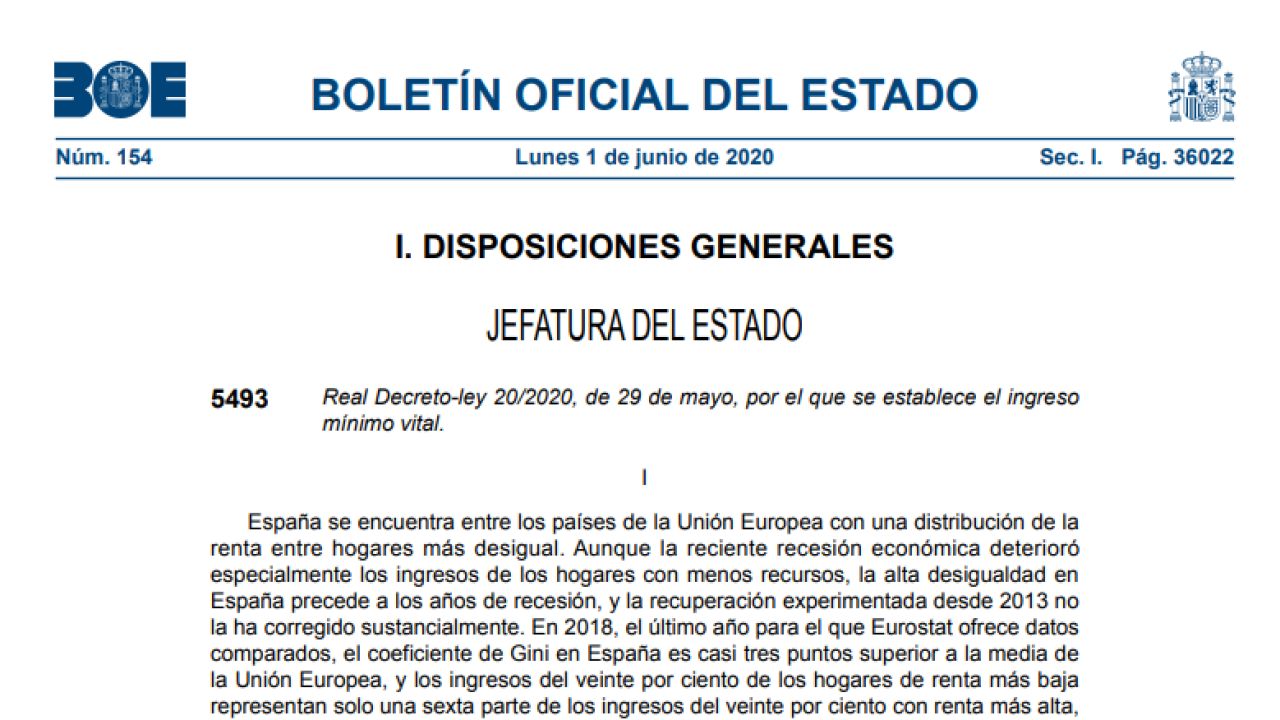 El Boletín Oficial del Estado (BOE) ha publicado todos los detalles del Ingreso Mínimo Vital (IMV) que pone en marcha este lunes el Gobierno de España con el objetivo aliviar la situación de precariedad de los hogares más vulnerables.