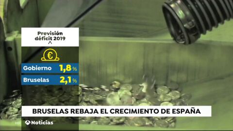 La Comisión Europea ha rebajado dos décimas su previsión de crecimiento económico para España tanto este año como el siguiente (al 2,6% y 2,2%, respectivamente) y ha aumentado el déficit público previsto para 2019, hasta el 2,1% del PIB, tres décimas por encima del objetivo del Gobierno y ocho con respecto a la meta pactada con la Unión Europea.