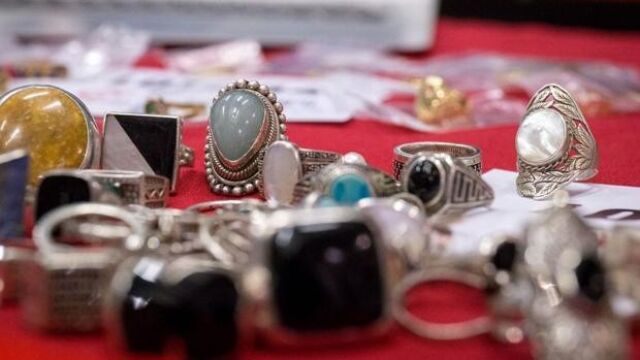 Entre las más de 2.000 joyas, agrupadas en 160 lotes, se encuentran algunos lotes que incluyen 80 anillos o medio centenar de esclavas plateadas. Otros, en cambio, se venden por separado, concretamente los más "valorados": un anillo con diamantes y esmeraldas engarzadas.