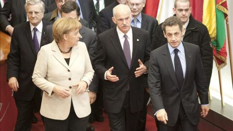 Tras el aviso de referéndum en Grecia, los principales líderes de la unión Europea, encabezados por Merkel y Sarkozy, se niegan a renegociar los requisitos del segundo rescate europeo sobre Grecia.