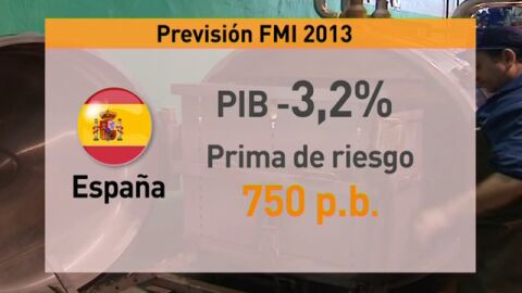 El último informe del Fondo Monetario Internacional no es, precisamente, muy alentador sobre el futuro inmediato de España. El FMI dice que en el peor escenario, la economía española podría caer hasta un tres por ciento en 2013, y la prima de riesgo podría subir hasta los 750 puntos.