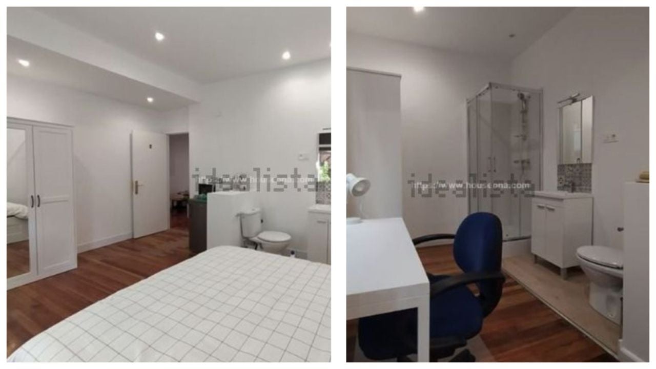 Y es que tener el baño dentro del propio cuarto, sin ninguna pared ni nada que la separe de la habitación y contar con ducha y baño a pocos centímetros de la cama puede suponer un alivio y un problema. Esta polémica habitación de Idealista cuenta hasta con armario y escritorio, 100% completo.