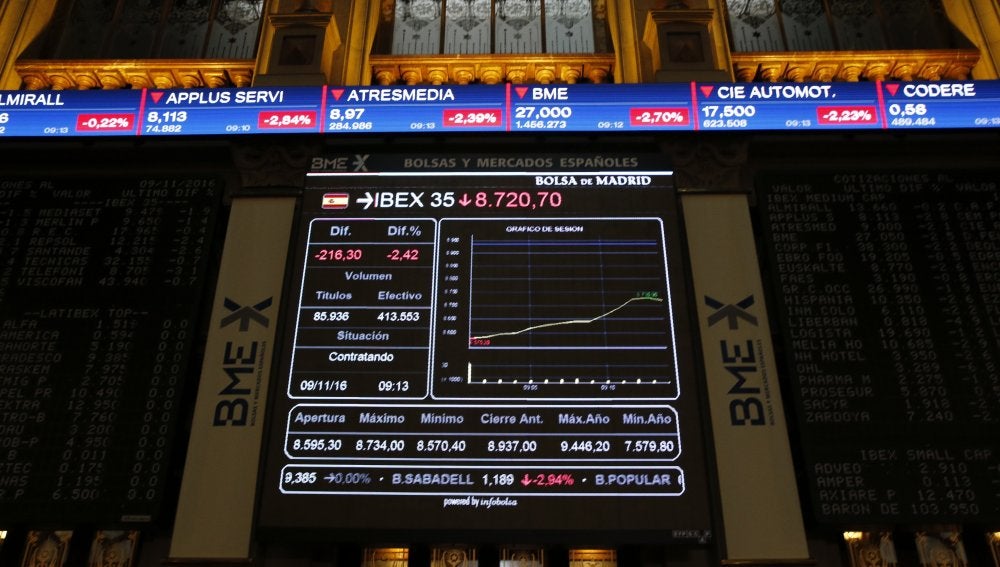 En este contexto y animado por el cierre en positivo de Tokio (0,16 %) y la fuerte subida de la plaza neoyorquina de ayer, el Ibex comenzó la sesión con un avance superior al 0,8 %. Pese a que a mediodía las subidas eran menos importantes, la apertura de nuevo al alza esta tarde de Wall Street ha impulsado las compras y ha permitido a la plaza española acercarse a 10.000 puntos.