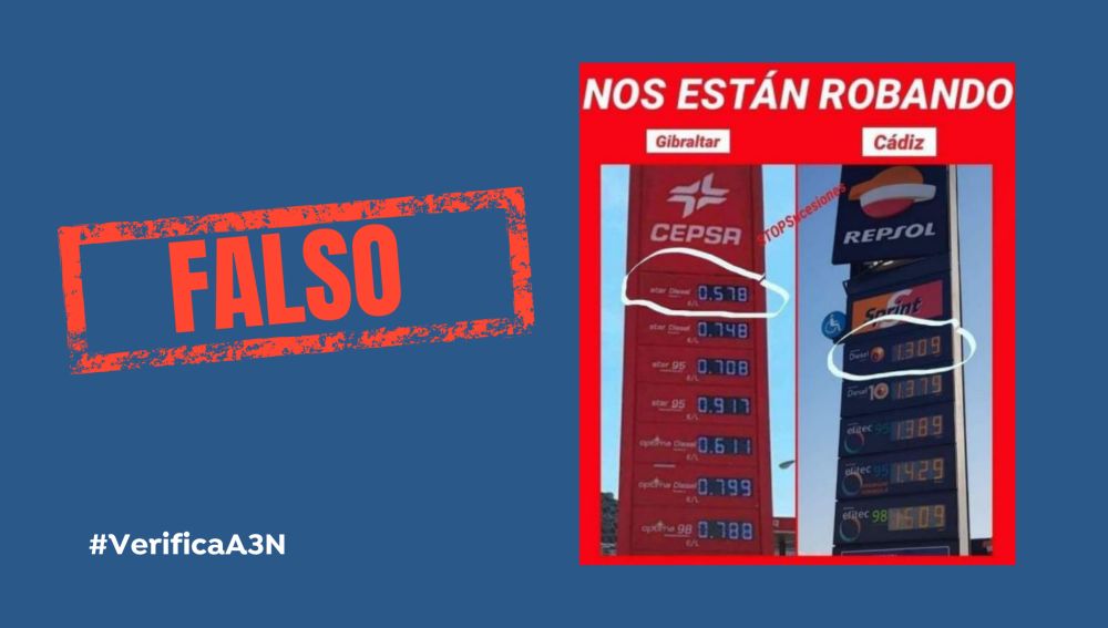 La comparativa y diferencia de precios de la gasolina entre una gasolinera de Gibraltar y otra de Cádiz ha indignado a los usuarios de las redes sociales. En Verifica A3N hemos sacado la lupa y hemos descubierto que esta imagen no es actual: se comparte en Internet desde el año 2016. Vemos todos los detalles y repasamos la escalada de los precios de los carburantes.