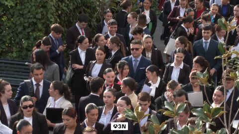 Largas colas desde primera hora de la mañana para presentarse al casting de azafatos y azafatas de vuelo. Lo convoca la aerolínea Air Nostrum que busca trabajadores. Está seleccionando tripulantes de cabina de pasajeros en Madrid. Hay cientos de candidatos, la gran mayoría son jóvenes, que se han acercado hasta un hotel de la capital donde se realiza la selección con toda la documentación que se les pedía.