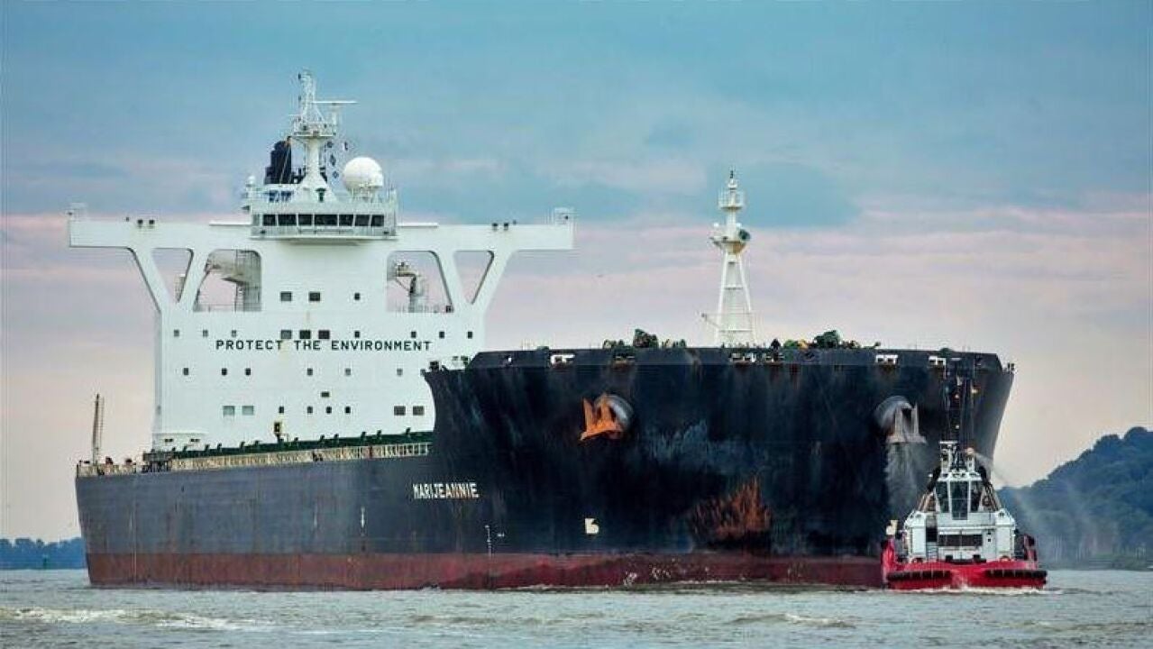 Es el Marijeannie, un buque con bandera griega y una eslora de 292 metros. Llega desde Indonesia y esta mañana ha atracado en el puerto exterior de Ferrol, concretamente, en el muelle de descargas de Endesa. En sus bodegas trae 165.000 toneladas de carbón.