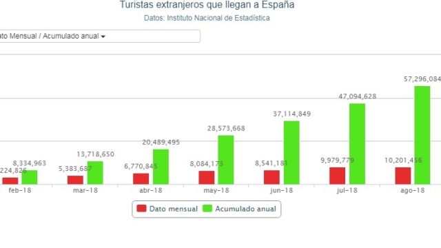 En lo que va de año, la llegada de turistas ha caído en abril (4,4 %), por el efecto Semana Santa (que el año pasado fue en marzo); enero (0,2 %), julio (4,9 %) y agosto (1,9 %). De vuelta a los datos de septiembre, la llegada de turistas británicos y alemanes bajó en ambos casos el 3,1 %, hasta 2,1 y 1,4 millones de viajeros, respectivamente. Por su parte, la entrada de turistas procedentes de Francia repuntó el 6 % y superó el millón, la de italianos creció el 21,4% (0,47 millones), la de portugueses el 14,8 % (0,24 millones) y la de rusos el 7,6 % (0,16 millones).