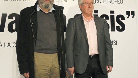Los secretarios generales de CCOO, Ignacio Fernández Toxo, y de UGT, Cándido Méndez, han cifrado el seguimiento de la huelga general en un 77%, mientras que el Gobierno habla de una participación menor que en las huelgas de 2002 y 2010.