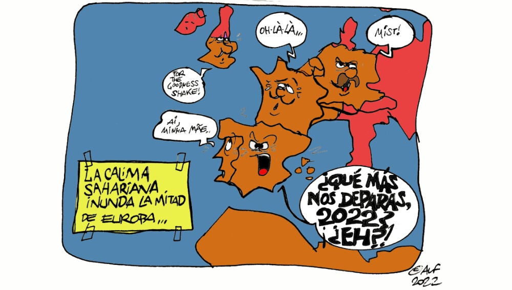 ¿Qué más nos deparará el 2022? Es la pregunta que muchos se hacen tras ver cómo la calima sahariana ha cubierto muchas ciudades españolas y europeas. Este paisaje anaranjado protagoniza la viñeta gráfica de Alfredo Boto-Hervás de la semana.