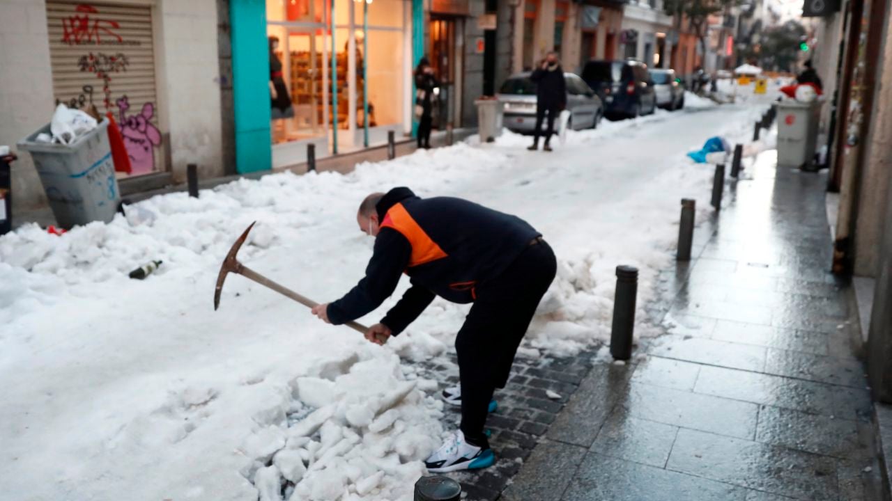 Los efectos del temporal Filomena siguen causando estragos en gran parte de la Comunidad de Madrid, cuyas calles siguen estando abarrotadas de nieve.