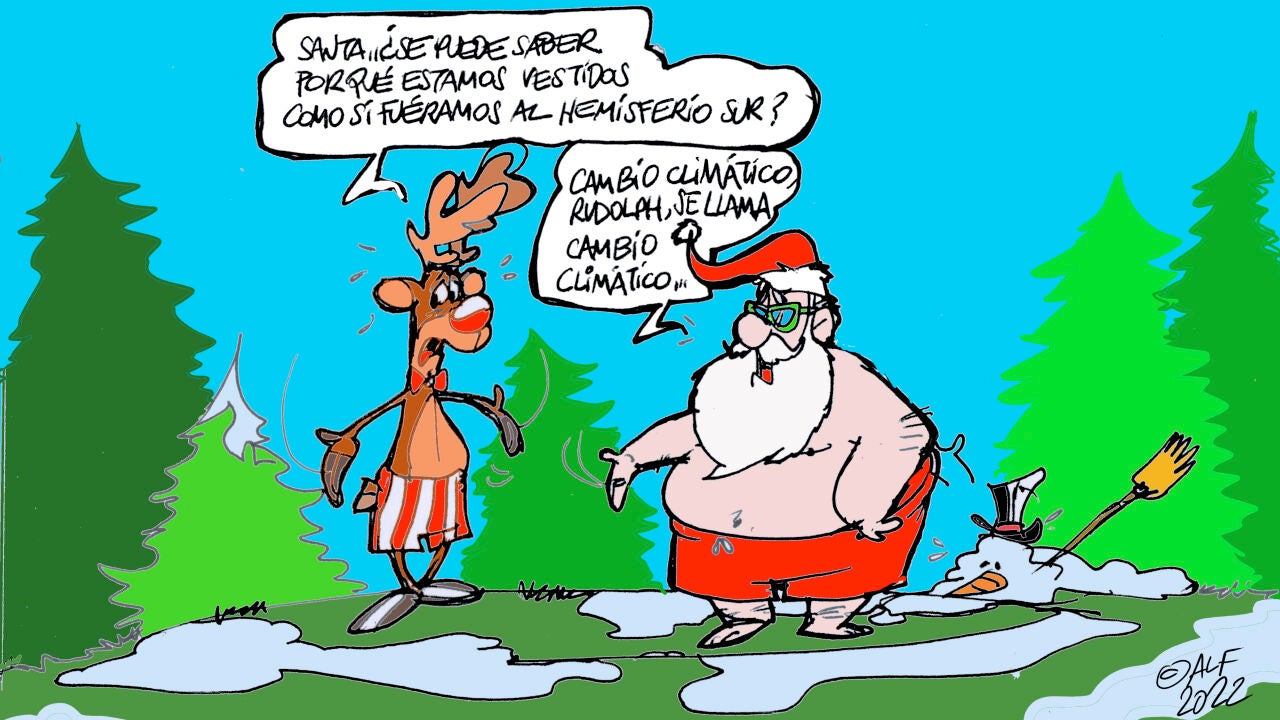 Unas navidades marcadas por el cambio climático son las protagonistas de la viñeta gráfica de nuestro ilustrador Alfredo Boto-Hervás. "Santa... ¿Se puede saber por qué vamos vestidos como si fuéramos al hemisferio sur?". "Cambio climático Rudolph, se llama cambio climático... ", es lo que se puede leer en la viñeta. Una preocupación mundial que no para de aumentar y que necesita de una conciencia social urgente para tratar de ponerle freno.