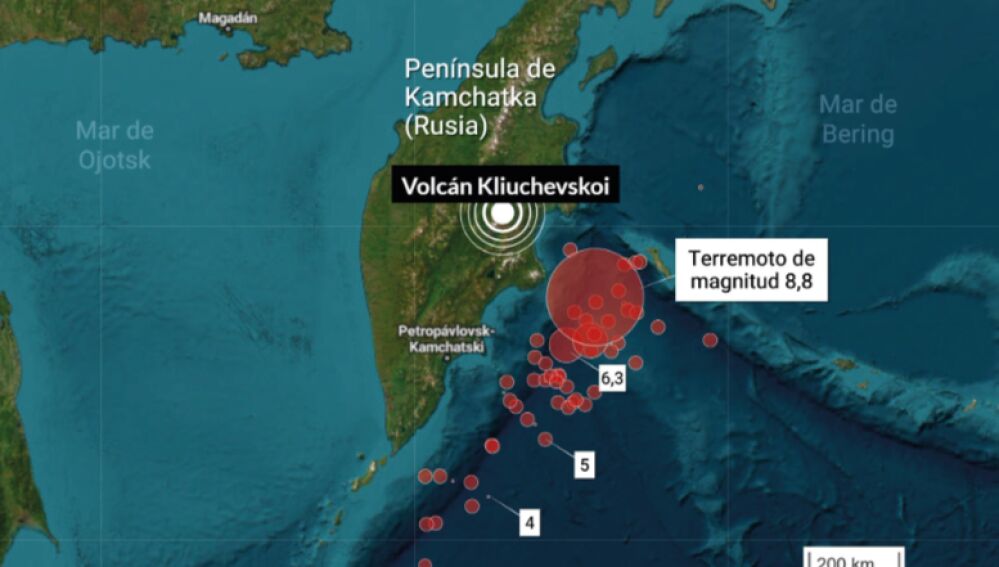 Este martes, un terremoto de magnitud 8,8 sacudió el fondo marino a 130 kilómetros de la costa oriental de la península rusa de Kamchatka, generando alertas de tsunami en gran parte del Pacífico Norte y Sudamérica. Las olas golpearon la costa rusa con hasta cinco metros de altura, alcanzando ciudades como Sévero-Kurilsk, donde causaron daños en el puerto y en embarcaciones, y obligaron a evacuar zonas costeras. Además, provocaron evacuaciones preventivas en Japón, Hawái, Alaska, Colombia, Ecuador, Perú y Chile.