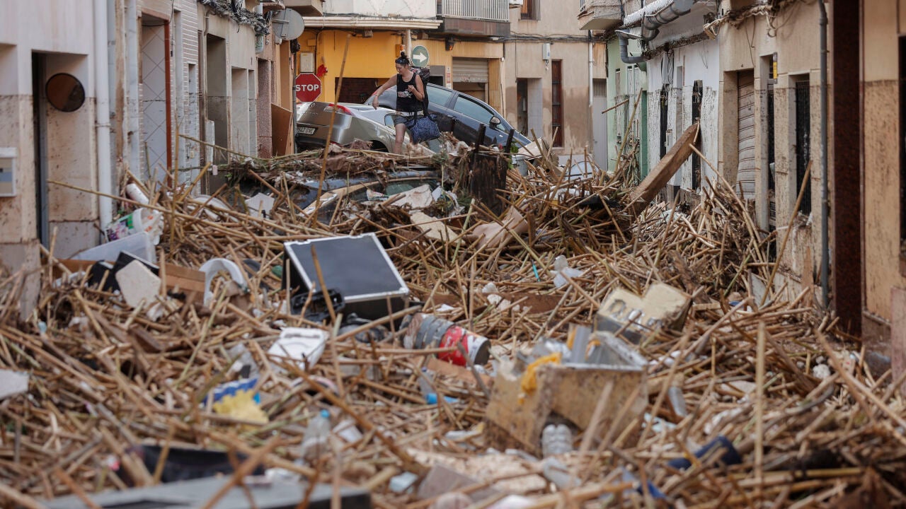 Hoy las calles de Paiporta recuerdan a un escenario apocalíptico con columnas de coches apilados, gente buscando comida del suelo... También se quedaron incomunicados, sin agua y sin luz.